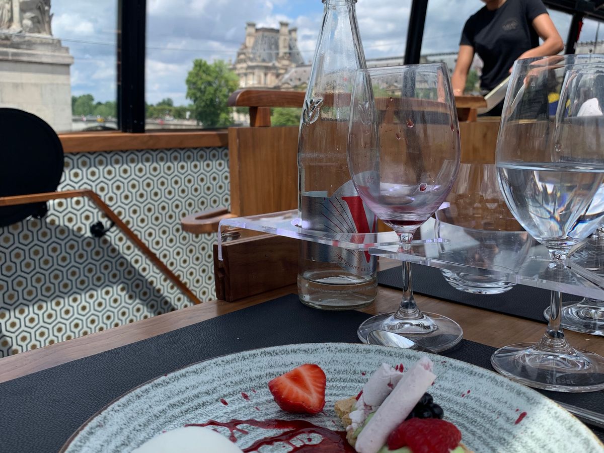 昼のコースで、バスの食事ということで それ程期待していなかったのですが、見た目も味も豪華なものでした。パリの町並みを車道からゆっくり楽しめる贅沢なひとときを過ごしました。旅のはじめに場所の確認としてもお薦め。家族でも楽しめますし、恋人同士なら最高です。隣は外国人ご家族だったのですが、静かに食事をされており気にはなりませんでした。