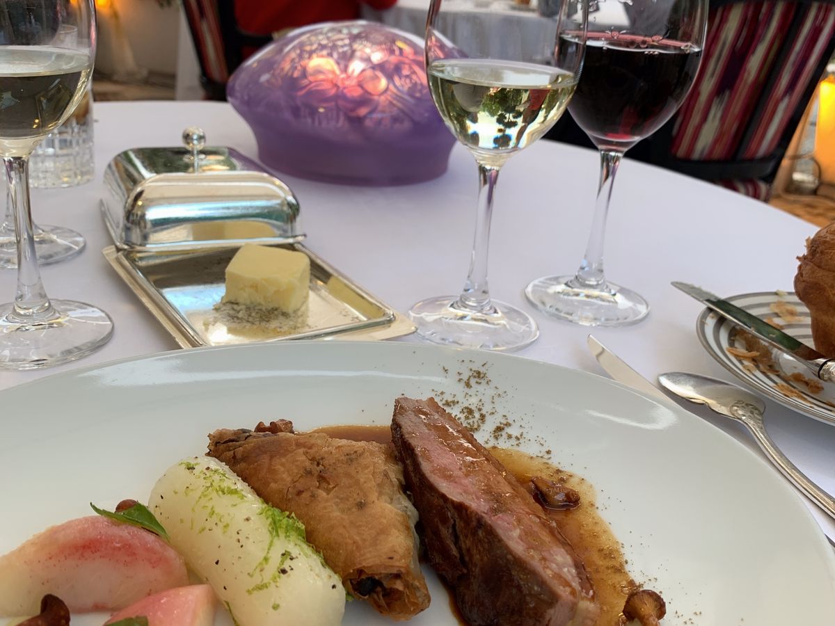 8月上旬の滞在だったため、外のテラス席でいただきました。レストランの方々もみなさん紳士で、振る舞いが丁寧でした。お客様がたもドレスアップされていて、素敵な空間でとてもゆっくりとした時間を過ごすことができました。