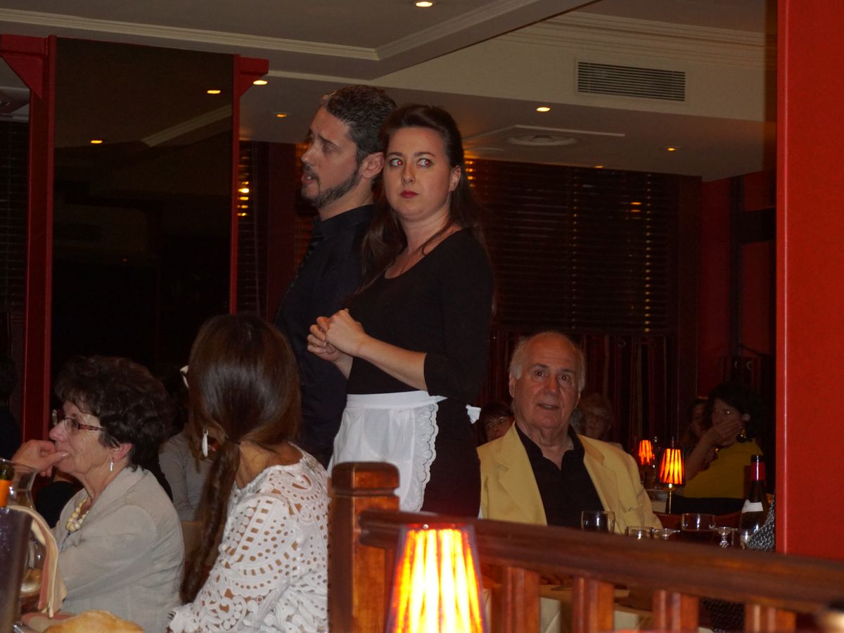 オペラの名曲のアリアを気軽に楽しめました。ウェイター、ウェイトレスの中の男性2名、女性2名が歌手で、20時を過ぎたくらいから、食事のサービスの合間に20分おきに1曲くらいのペースで歌います。予約時間が選べたので、一番早い 19:30に入店しましたが、一番盛り上がるのは、22時くらいだったので、ずい分と長い滞在時間になりました。食事は、入店後からサービスされますが、デザートは、21時半くらいに全テーブル合わせてサービスされ、早く入店したので、間延びしました。段取りがわからず、デザートが運ばれたタイミングで、もう帰るのでタクシーを、とお願いしたところ、これから一番盛り上がりますよ!と教えてもらい、一番の盛り上がりを楽しむことが出来ました。