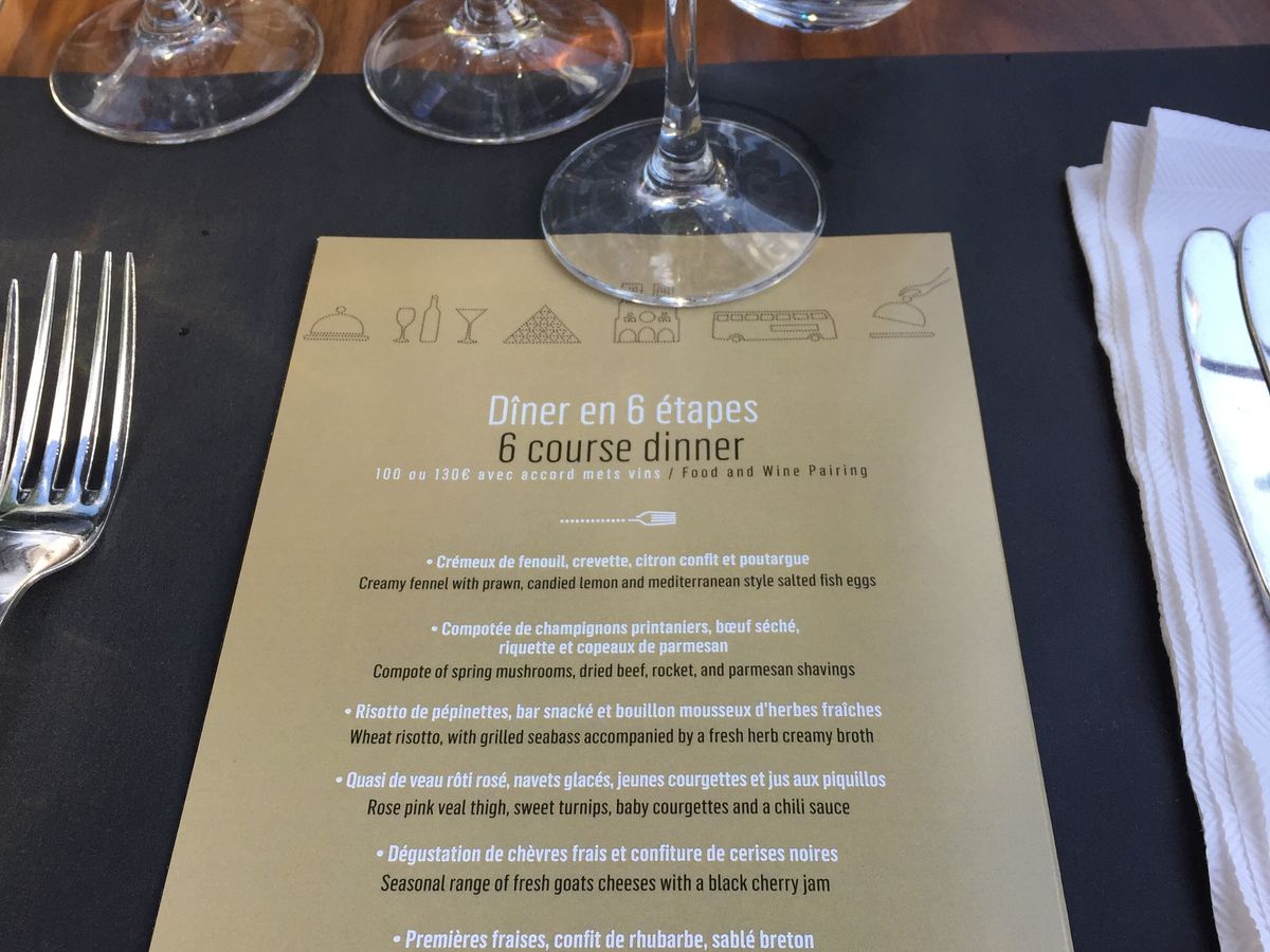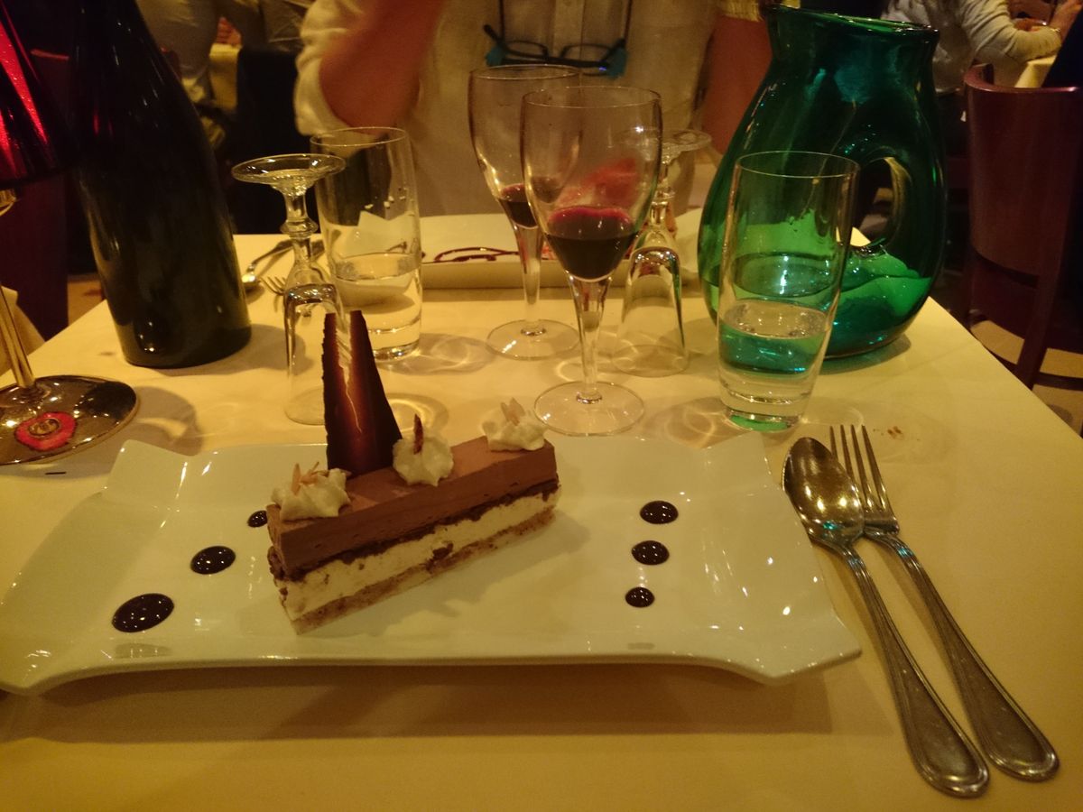 トライバーさんが5分前には来てくださり、とても好感のもてる方でした。 レストランはスタッフも内装も食器・丁度もゴージャスで文句ありません。 地元フランス人の方も多く、日本人は私達以外に一組でしたが、観光客ではなさそうでした。 量は少ないと聞いていたのですが、大食いの私でも半分は残しました。 デザートも多くて半分食べられませんでした。
