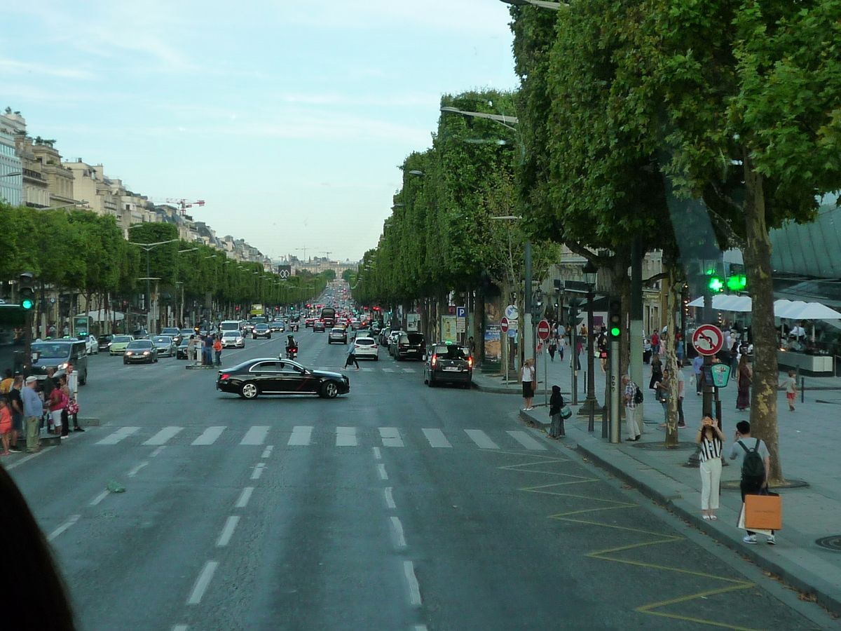 夜のコースは出発時間が2つあって19時45分の出発22時30分着でした。夏は21時半頃まで明るくて昼のバス観光と同じですが(写真下車はありません!)ディナーがついています!!ゆっくり楽しみながらパリの観光名所を廻りますが案内はペンタブレットを各所で示せば色々な言語で説明がいつでも聞けます。食事も美味しかったです。エッフェル塔ではシャンパンフラッシュのため停車していてここでだけ降りて写真が撮れました。ハイデッカーバスでガラス面積が広く充分見ることができます。途中何台も普通の観光バスとすれ違いましたが食事をとりながら観光している状況を著音羨ましそうに見ていました。ランチコースもあるようですが夜がお薦めです。