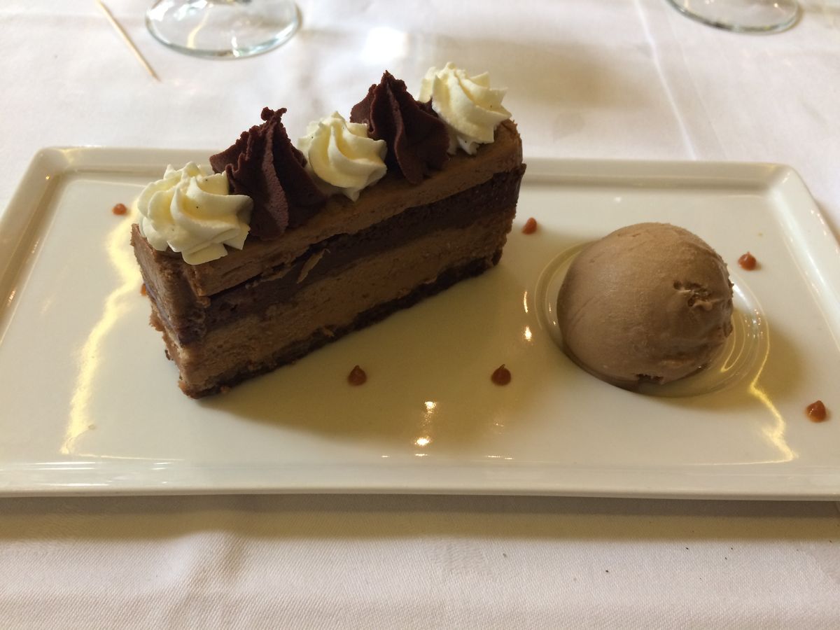 一方、メインは鴨とサーモンの料理で、使われているソースが料理ととてもよく合っていました。メインは大満足です。ただメインの料理は量が多く、メインを食べ終えるころには満腹になっており、デザートの量も多いので、最後のほうは食べすぎの感がありました。