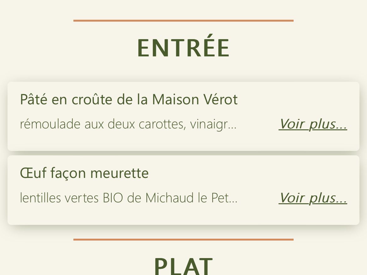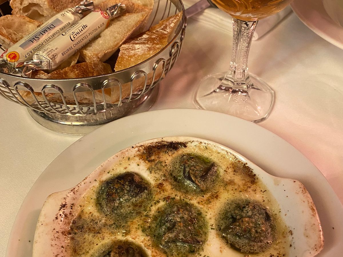私達はツアー会社経由で予約しましたので、3品(前菜、メイン、デザート)から好きなものを選択しました。私は、エスカルゴ、鴨肉、ティラミスを頼みました。エスカルゴは絶品で、ソースはフランスパンにつけて食べても美味しいです。また、鴨肉にはビックリ‼️ 何と、骨付き脚肉の状態で出てきました。こんな大きい鴨肉を食べるのは初めて。味はソースの味が染みこんでいて、柔らかく、これまた美味しい。そして、最後のティラミス。日本だと、4〜5人前くらいの量の大きさで、娘も頼みましたが、半分残しました。