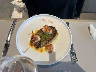 パリ旅行がパラリンピック開催期間中に被ってしまい、メトロの封鎖などで動き辛い時期ではありましたが、エッフェル塔でディナーをしたくて予約しました。スマートカジュアルなのでみすぼらしい格好で無ければ大丈夫ですが、スーツやドレスでバッチリ決めた人たちもたくさんいました。18時半からの回で予約していましたが、塔の麓にあるマダムブラッスリーの受付建屋に18時にバウチャーとチケットの引き換えが要ります。そこから予約者専用のエレベーターでエッフェル塔へ上がりますが、それでも待ち時間はあります。なので時間厳守で受付してください。窓側が内側より1万円くらい高い席ですが、一番窓際ではなかったのは残念。一番窓際に位置する2組は誕生日ディナーで予約していたからでしょうか?2人で7万弱はかなり高級なのですが、食事はいたって普通のコースでした。これは場所代が全てって感じの金額設定だと思います。その点では「一度は経験!」という事で納得しております。食事の後はセーヌ川クルーズを予約していて、降りるエレベーターがまた列をなしていたから、階段で降りて向かいました。
