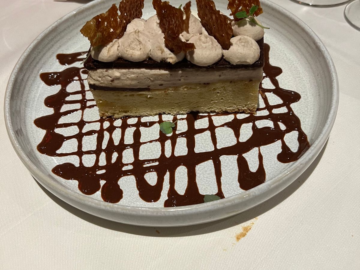 料理:サーモン、魚、肉、デザート。味、盛り付けなどはgood