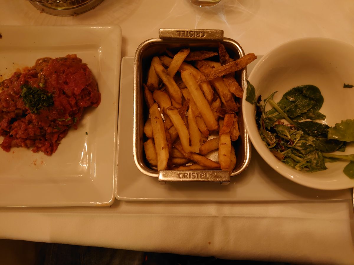 僭越ではございますが、メニューにも記載しておりました通り、ステーキという名からは想像し難いものの「タルタルステーキ」は生肉のミンチを使用した料理で、牛肉を柔らかくなるまでたたいて生のまま頂くものとなってございます。フランスではよく食されており、地元フランス人も利用するこのレストランでもとても人気のメニューです。日本ではなかなか召し上がりいただけないものとして、ぜひともお楽しみいただきたいと思い選択肢の中に組み込ませていただいておりました。