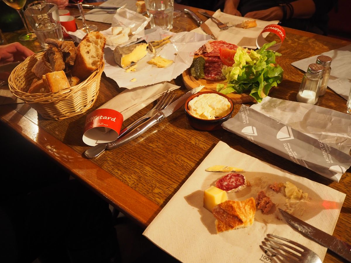最後にカフェに入って、ガイドさんが購入したパンやチーズ、ワインを皆で試食し、解散しました。