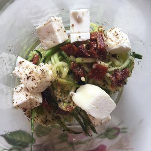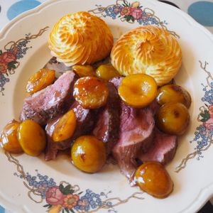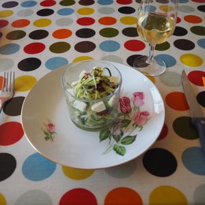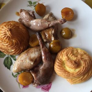 メニューは、ズッキーニの冷製前菜、ガチョウのロースト、プラムの焼きケーキでした。