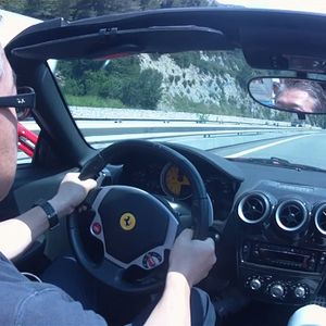フェラーリの運転は初めてでしたが運転しやすいATの車種でした。同様に初めて運転する家内と一緒に中年ちょい悪体験ができました。30分の間に高速に乗ってマントンまで駆け抜けてきました。アクセルを踏み込むと後ろでV8が突然吠え出す感覚は本能を根底から刺激されます。インストラクターの人も心得ていて「もっとアクセルを踏んで!行け行け!」と盛り上げてくれます。国際免許を忘れずに!