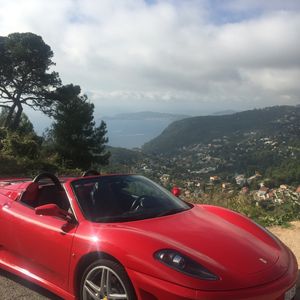 海は空の青を写すので当日のお天気が心配でしたが、晴天でコートダジュールの海の青さと真っ赤なポルシェ、素敵でした。郊外にでて、山の上から海を一望。フェラーリでの観光って感じで素敵でした。