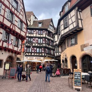 集合場所には複数のツアーの参加者が大勢いたので名前を呼ばれたのかどうなのか分からず、焦った。ガイドはプリンさんという少し日本語がわかる方でした。参加者はスペインの夫婦、オーストラリアからの母娘(彼女たちには2日後ストラスブールでばったり会いました)。日本が好きなオーストラリア人の女性と私たちの計7人でした。コールマール、エギスハイム、リクヴィール、他小さな村を巡った。コロンバージュの街並み、クリスマスマーケット、ワイン街道どれも素敵でした。城も綺麗で見応えありました。トイレも綺麗。高速道路を爆走するプリンさんも素敵でした。コールマールは気にいったので翌日鉄道(30分)で再訪しました。