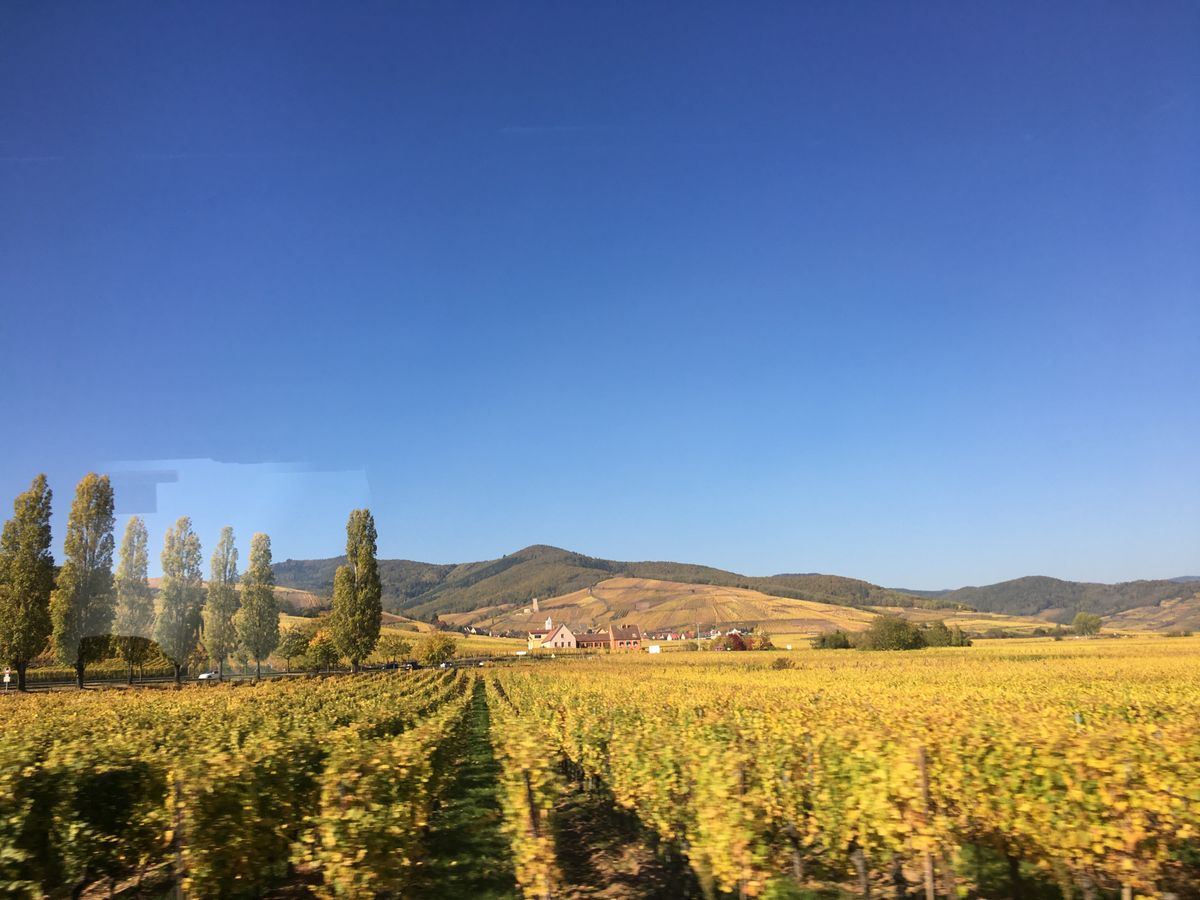 10月中旬の晴天の一日、黄金色の葡萄畑か広がるアルザスワイン街道をドライブしました。