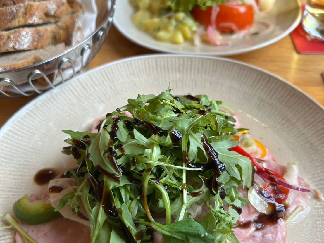 ローテンブルクの街では昼食を取る方が多いと思いますが、私達はガイドさんがお勧めのレストランで食べました。座席数も多く、外の入り口壁面に、日本語メニューも掲示してあったので、スマホで写真を撮ってから、お店に入れば、オーダーもしやすいと思いますし、ガイドさんと運転手さんも、そのレストランで食事していたので、自由時間になってから、何か聞きたい時には安心でした。