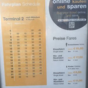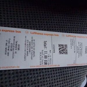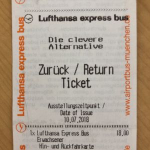 慣れない一人旅で夕方着なので、ミュンヘン空港からミュンヘン中央駅まで、事前にエアポートリムジンバスの片道チケットを購入して安心して旅立ちましたが、実際には、乗り場を探すのに、少し苦労したのと、運転手さんにバウチャーを提示しても、最初、「これでは乗れないよ」とか言われ、何とか乗せてもらったものの、降りるときに再び、このバウチャーは、使えないから料金を払うように言われました。その運転手さんは、よくわからないみたいで、先に到着したリムジンバスの運転手さんと、暫し話をして、結局、料金を再度払うことなく済みました。初めての利用で、何がなんだかわからず、結果的には、リムジンバスでの空港から中央駅までの移動は楽でしたが、旅の最初から少し戸惑ってしまい残念でした。