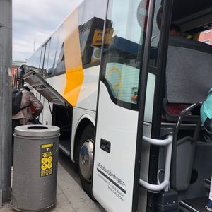 帰りのバス停はミュンヘン中央駅を正面にすると右端(空港から到着した同じ場所)になります。帰りも同様にドライバーが荷物の収納をしてくれます。