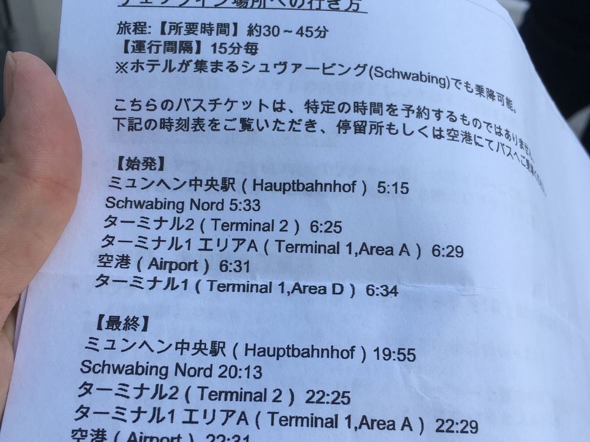 バウチャーを印刷せず、バスの中で名前などドイツ語の記入用紙に書く必要がでてしまいちょっと大変でしたので、印刷していくことをお勧めします。