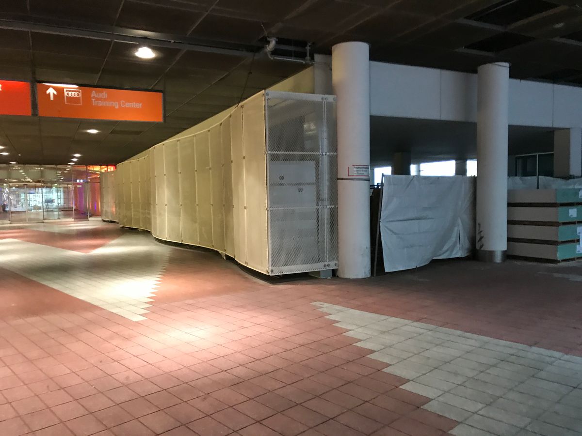 宿泊先のミュンヘン空港のヒルトンからバス乗り場まで行くのに少し迷いました。ホテルフロント階から外に出て、空港ターミナルの前で眺めてみると、すぐ下の階に止まってました。だが、たどり着くのにひと苦労。結局、ホテルフロント階からマイナス1フロアに行き、そこから空港ターミナルに行く途中の写真のところを入るとバスターミナルです。