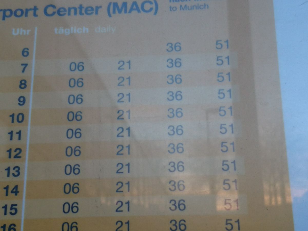 バス乗り場まではすんなり行けたのですが何番にミュンヘン中央駅行きが来るのかわからなかったです。運転手さんに聞いたらすぐ教えてくれました。