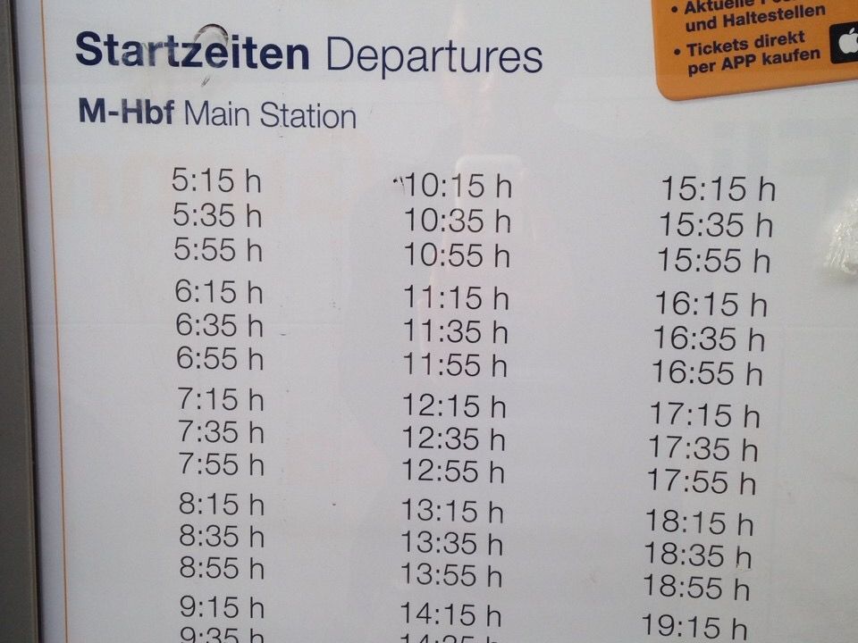 娘の大学卒業記念に女同士で初ドイツの旅で利用。日本で事前手配は、到着しても慌てる必要なし。バス便は、たくさんあるし、空港目の前から乗れるし、とってもラク。朝も、ミュンヘン中央駅発も5時台からあり、運転手さんも優しいしルフトハンザロゴも分かり易い。ゆったりプチ観光気分も味わえます♪又利用します。