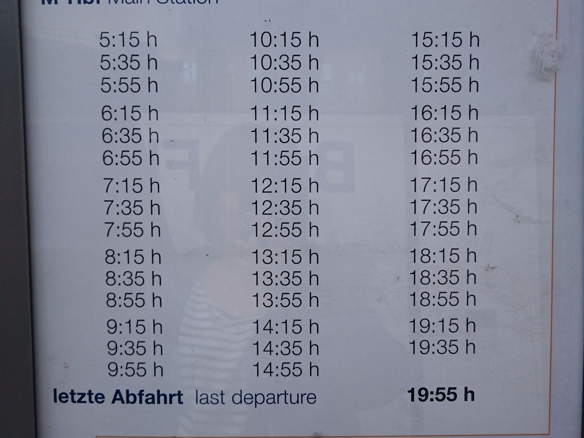 バス停に着き10ほどしてバスがやって来ました。時間は確認していませんが、20分おきくらいにバスは来るようです。実際、帰りのバスもミュンヘン中央駅にすでにバスが客待ちしている状態で待つ事はありませんでした。