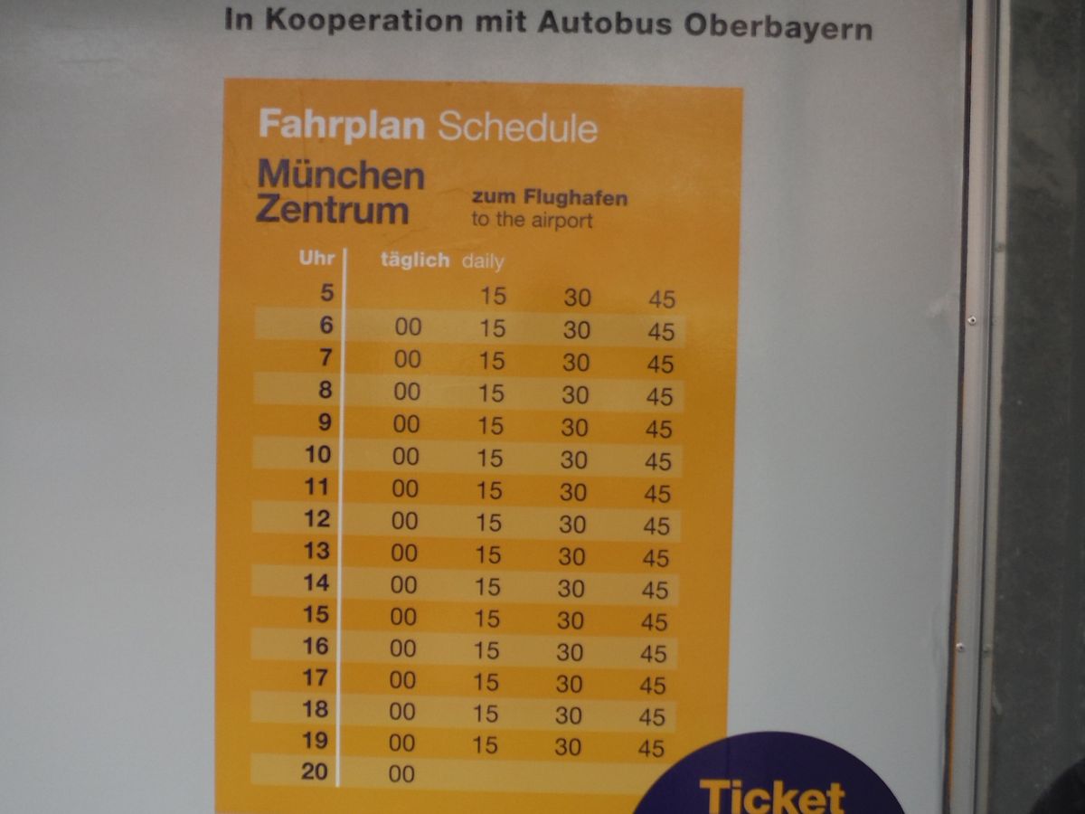 空港と駅の往復を利用。空港の乗り場は少し迷ってしまったけど、ミュンヘンの中央駅の乗り場は空港のマークの看板もあって分かりやすいです。北口を出てすぐで、時間も1時間に4本出ているので便利です。