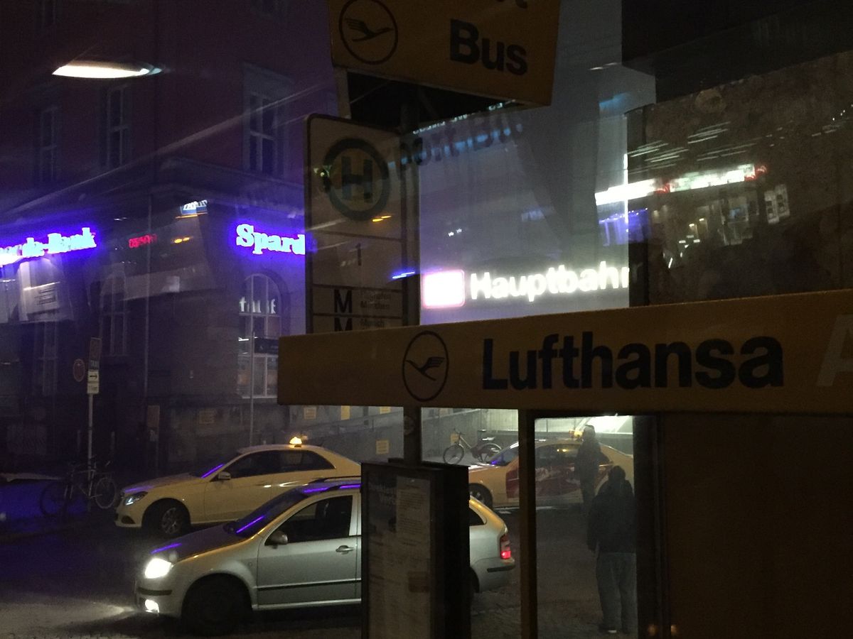 ミュンヘン空港に到着する頃にはもうあたりが暗くなっていたので、バスを確保していて安心感がありました。