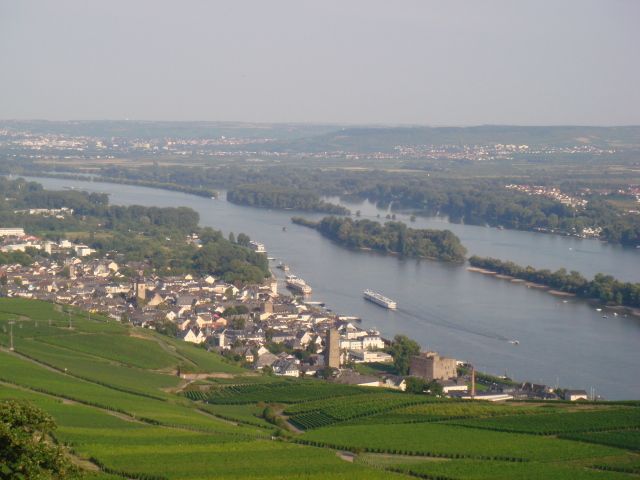 最初はリューデスハイムに到着し、大きな記念碑(銅像)を見てライン川を見下ろす景色を楽しみます。