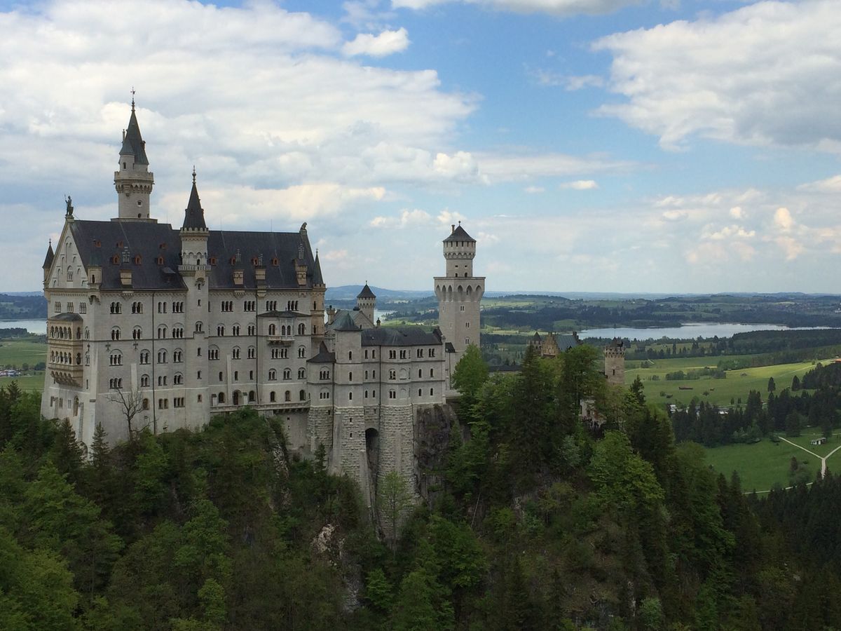 快晴の日曜日、素晴らしい眺望のお城を二つ体験できました。リンダーホーフ城は、城内部が大変素敵でした。現場のガイドさんが、大変ゆっくりわかりやすく説明してくれました。また、ツアーバスのガイドさんも、説明が大変ゆっくりでわかりやすかったですし、合間に日本語のイヤホンでの説明も流れましたので、よくわかりました。ノイシュバンシュタイン城では、城内ツアーの前にマリエン橋まで行って写真を撮ってくるように、時間配分などを参加者に繰り返し説明していて、非常によいガイドさんでした。快晴の日曜日だったので、非常に人が多く、マリエン橋は鈴なりの人でした。若い方はいいのでしょうが、揺れるし、高度があり、ちょっと怖い思いをしながら写真を撮りましたが、行けて良かったです。