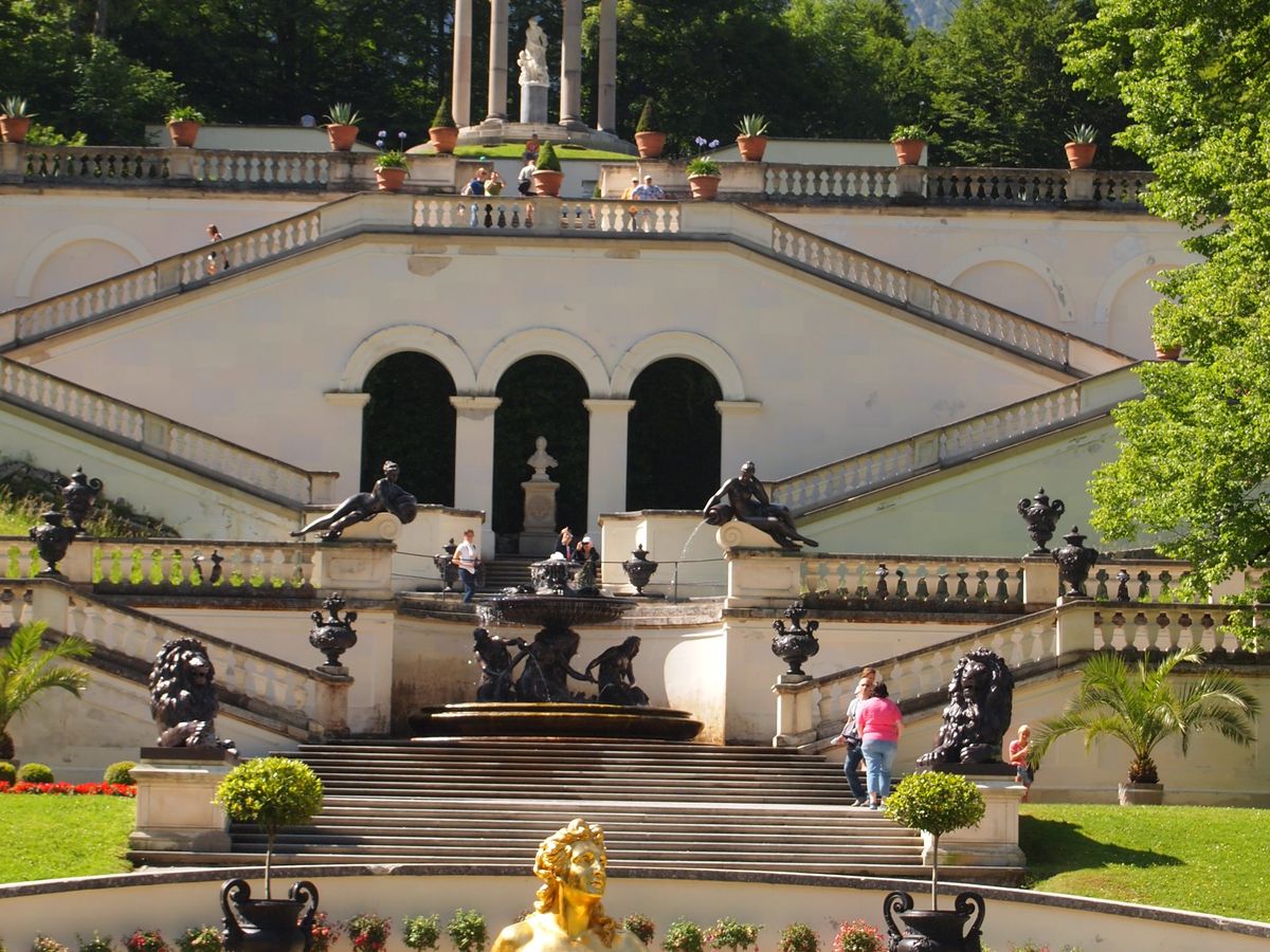 集合場所には行先の違うバスが何台か停車してあったが、迷わず乗車できた。リンダーホーフ城の見学時間が短く、洞窟まで見ることができなかったのが悔やまれる。あと20分ぐらい多く、見学時間をあれば良かった。また、次の見学地、ノイシュバンシュタイン城で,ホーエンシュバンカウ城まで観光したいのであれば、予定された昼食時間を削って、見学に行くことをお勧めします。。また、事前に城見学共通券(Mehrtagesticket 14日間有効、二人で40ユーロ)を購入しておくと、無料で見学できます。