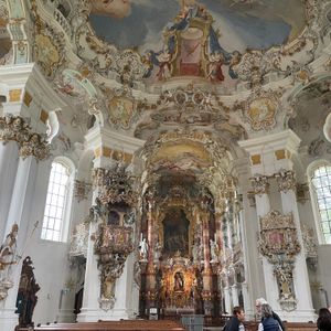 朝一番の、まだ人が少ないマリエン橋からのノイシュバンシュタイン城に感動しました。橋の下の断崖絶壁も恐ろしい程の深さで、当時の城の建設の大変さが想像させられました。ガイドの萩原さんの人柄から、ツアーは安心して楽しめました。私達が駐車場に戻って来る頃には大勢の観光客がいました。早い時間にノイシュバンシュタイン城を満喫出来て本当に良かったです。ヴィースの巡礼教会もまた素晴らしい天井壁画でした。ミュンヘン中央駅までバスでゆったり座って帰って来られて楽チンでした。ありがとうございました。