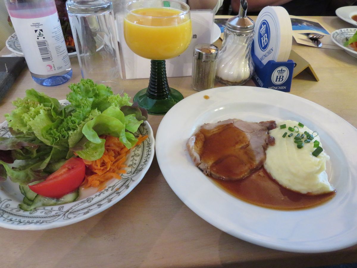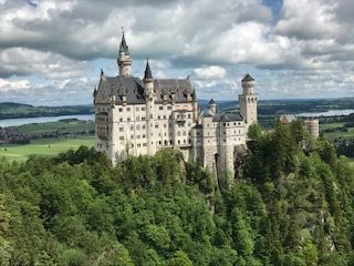 小雨がぱらつきあいにくのお天気でしたが、少し雲がかかっているノイシュヴァンシュタイン城は幻想的できれいでした。マリエン橋は人がいっぱいで写真をゆっくる撮るひまはなかったです。ランチ付きのプランにしましたが、レストランは満員でした。同じ料理を街中のレストランで食べましたが、そこと比べると味付けや量が日本人向け(量は半分くらい)で食べやすかったです。