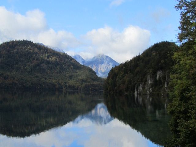 出発前から当日は降雨の予報で眺望は半分諦めていましたが、所々晴れ間も出て楽しむことができました。ノイシュヴァンシュタイン城の麓のアルプ湖の景色も意外と良かったです。