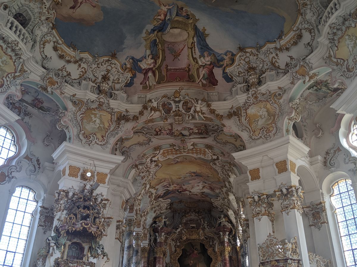ヴィース教会は絢爛豪奢で圧倒された。急な大雨に降られた影響で中が暗かったが、晴れて明るかったらなお感動的だったと思う。名物の揚げパンを買いたかったが、雨と寒さに負けて断念(6月後半だったが、雨が降ると長袖1枚だとつらいくらい急に寒くなった)。
