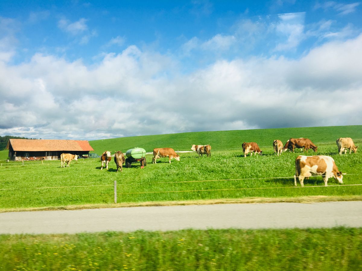 道中のロマンチック街道は、悪く言えば片側一車線の歩道も無い細い舗装道路が延々と、しかし「サウンド・オプ・ミュージック」のマリアがいつ飛び出して来てもおかしくない、広々した牧草と豊かな森とのコントラストが美しく、独特の様式に統一された家々がまるで絵本の連続です。