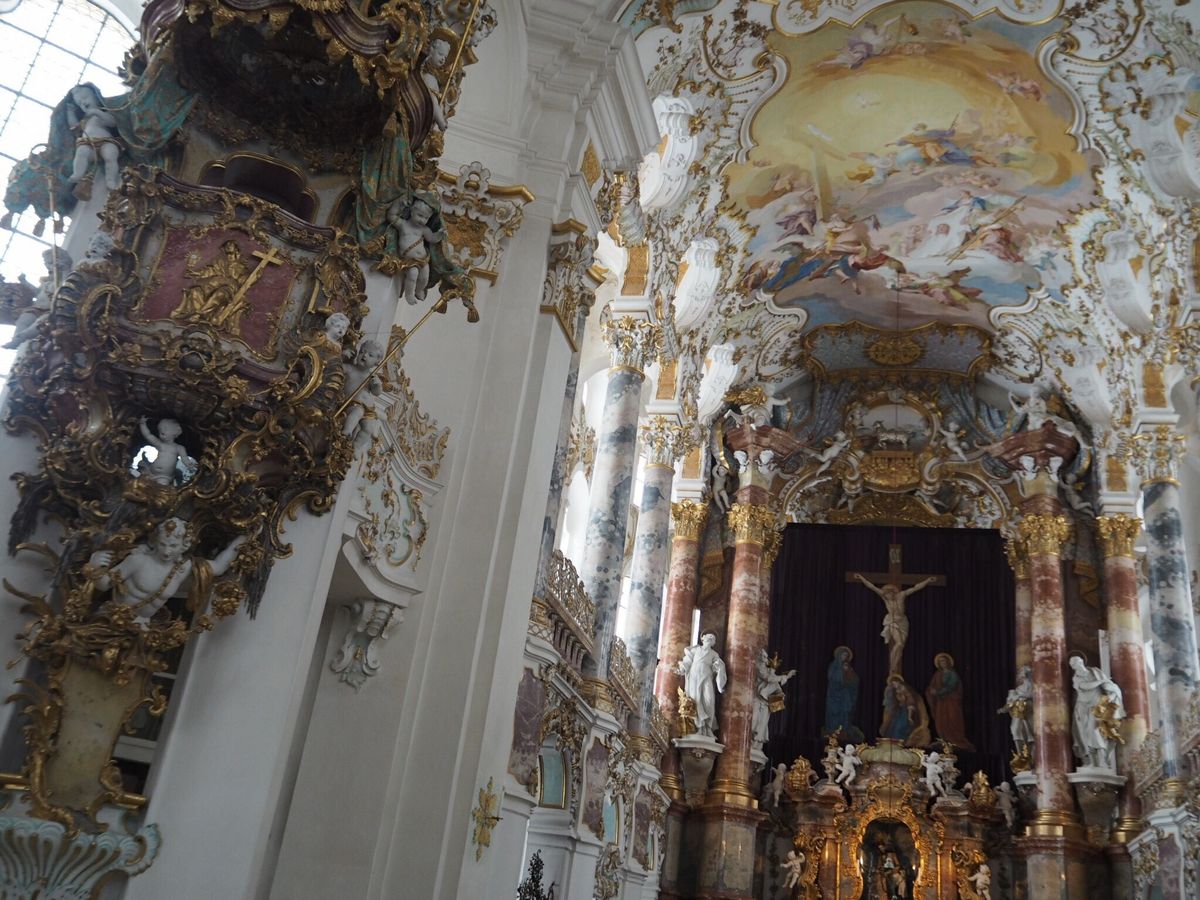 実は勉強不足で、ノイシュバンシュタイン城しか目当てで無かったのですが、3箇所いずれも素晴らしいところでした。当日は曇りがちでノイシュバンシュタイン城も近くまで見えたり見えなかったりでしたが、逆に幻想的な天空城の姿をみることができました。また、リンダーホーフ城は小さなお城でしたが豪華絢爛の贅を尽くした内装でした。ルードヴィッヒ2世の心を巡るには凄く良かったと思います。世界遺産ヴィース教会も、自力ではなかなか行けないところだろうなと思います。これら3つを一日で巡れるツアーはとても贅沢だと思います。