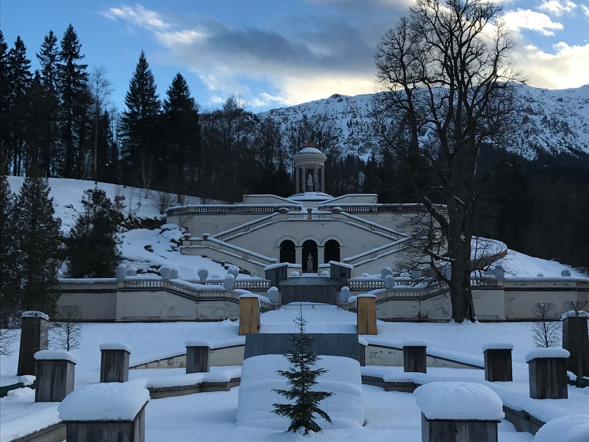 リンダーホフ城はノイシュバンシュタイン城よりは規模は小さいですが中は中々見ごたえありました。庭は雪が被り洞窟は工事中で見れませんでしたが十分楽しめました。