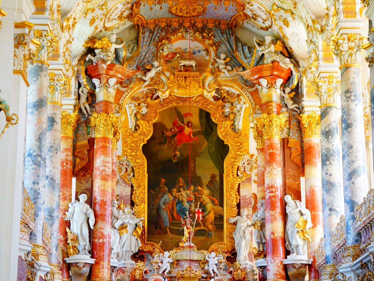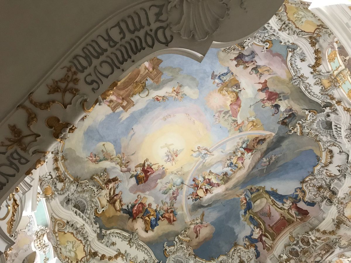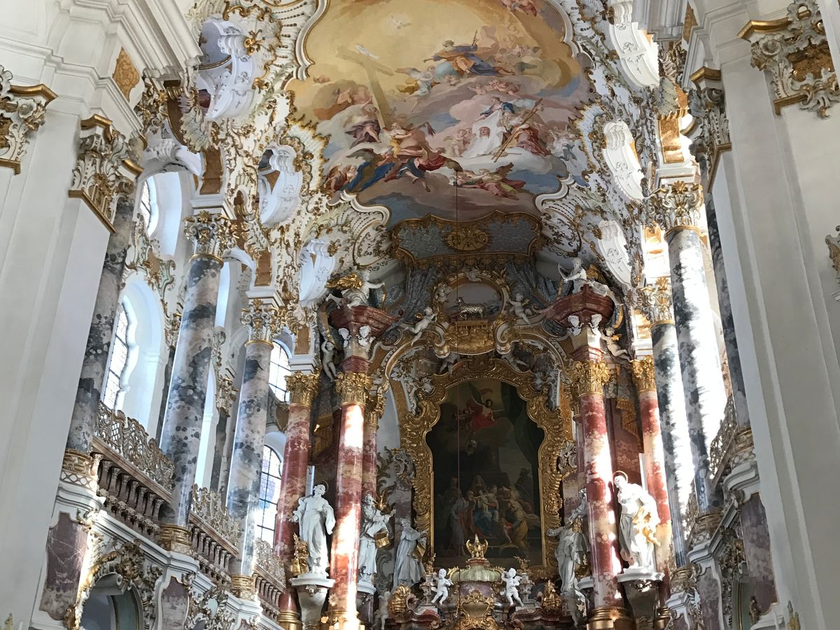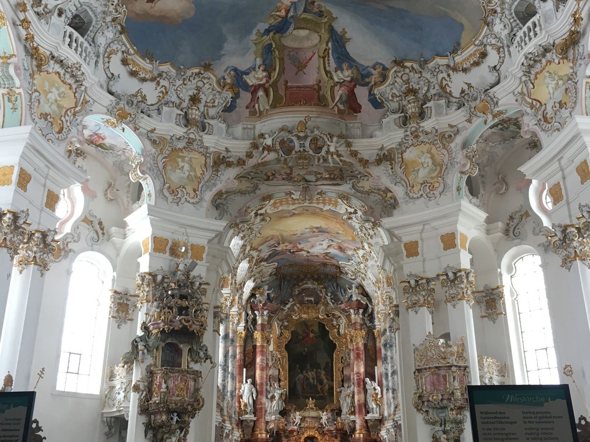 ヴィース教会はのどかな田園の中に佇んでいるかわいらしい教会でした。周りの雰囲気と共に楽しめ穏やかな感じになりました。