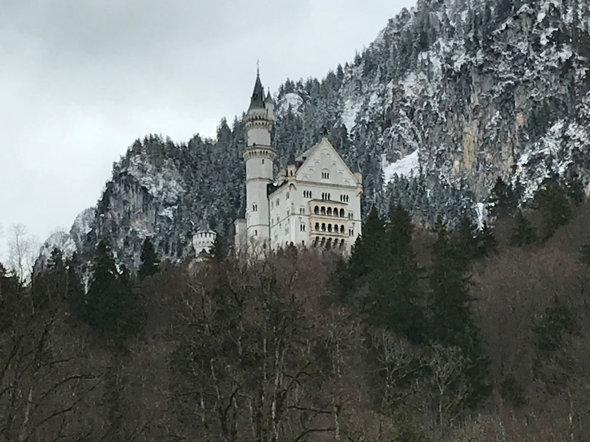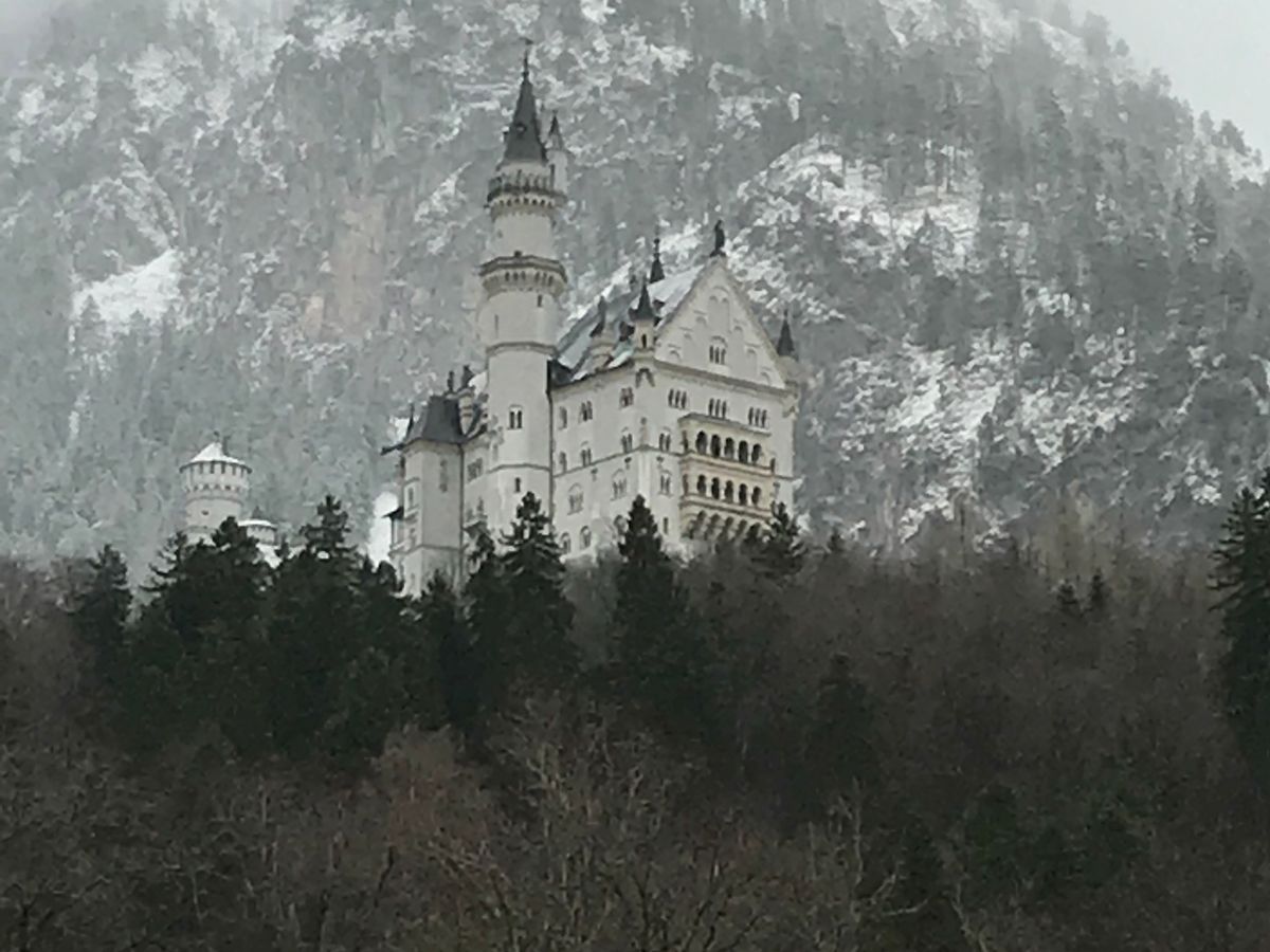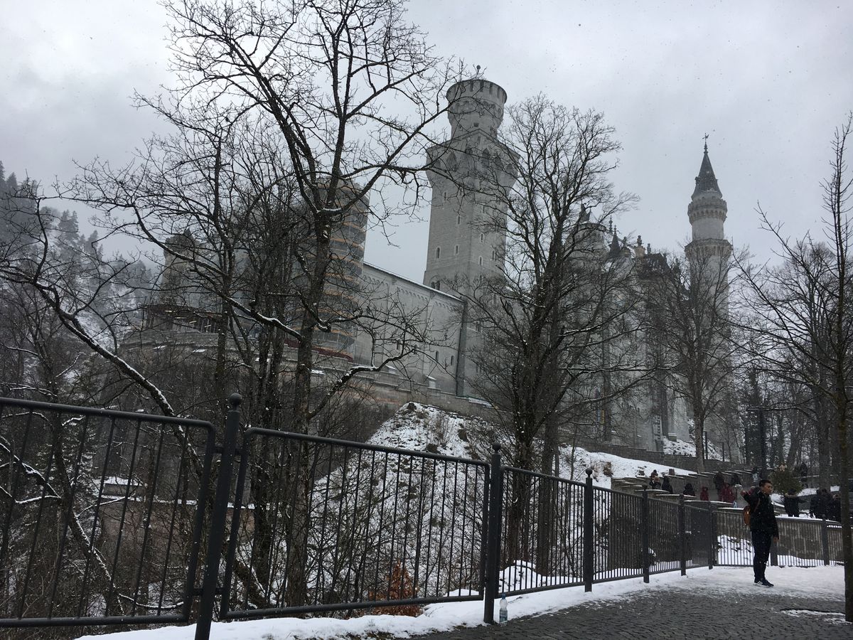 8時にミュンヘン中央駅に集合し、バスで移動。車内ではガイドさんがドイツのことを詳しく説明してくれます。ノイシュバンシュタイン城は雪がかなり残っており、気温も-10℃近くで、マリエン橋は入れませんでした。こればかりは運ですね。ガイドさん曰く、雪がなければ冬でも入れるそうです。冬の参加の場合は、マリエン橋には入れない可能性を分かった上で、寒さ対策を忘れずに。自由時間にホーエンシュヴァンガウ城の近くまで行き、写真を撮りました。ツアーには含まれてないので、中には入れません。その後ヴィース教会へ行き、ミュンヘン中央駅に戻り終了。