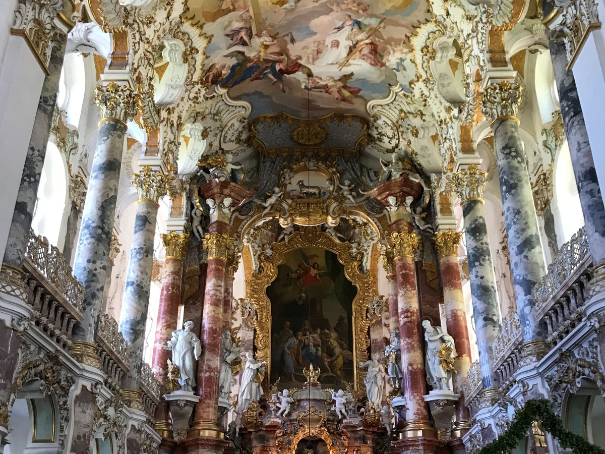 また、その後に立ち寄ったフッセンの街も可愛いし、世界遺産ヴィースの巡礼教会も草原の中に佇んでいてリラックスできる場所でした!教会の中もとても美しくて心が洗われました。