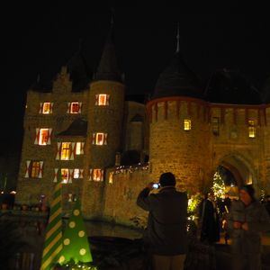 フランクフルト中央駅からケルンまで電車でも行けるのですが、往復の運賃が結構かかります。ケルンでの滞在時間もたっぷりあり、世界遺産の大聖堂は圧巻でした。ザッツファイ城のクリスマスマーケットの雰囲気は中世風で言葉では言い表わせない位素敵な体験でした。日本人も私達だけ。地元の方が多く、土日だけ開かれるそうです。人口500人程の綺麗な村もこの時期多くの人が訪れ、お城の中庭にはサンタさんまでいました。メルヘンの世界です。お城のお堀にシルエットが映りこみ、絵本の中にいるようでした。おすすめです。