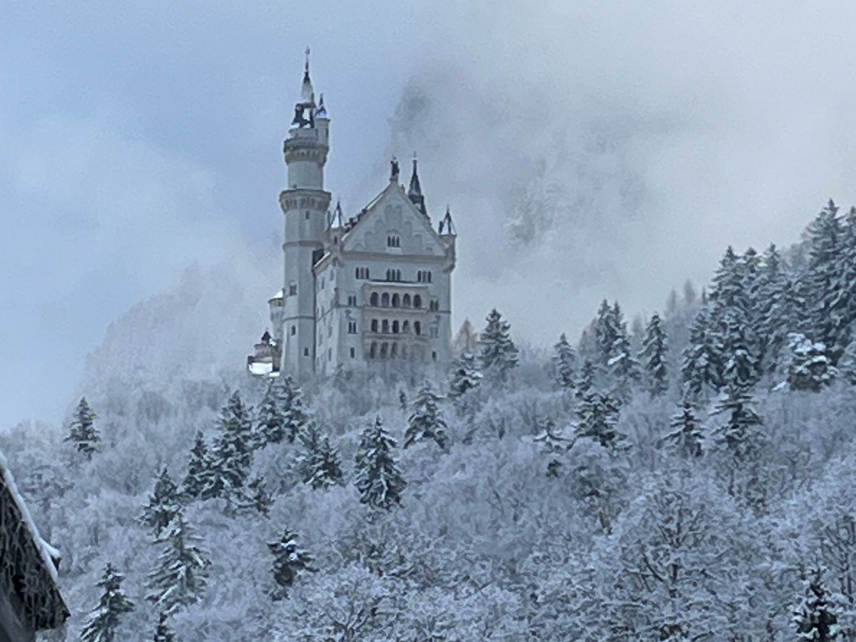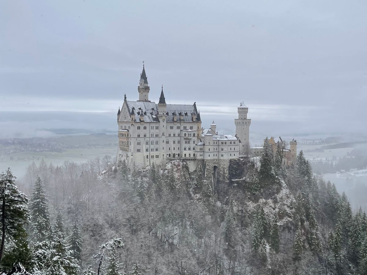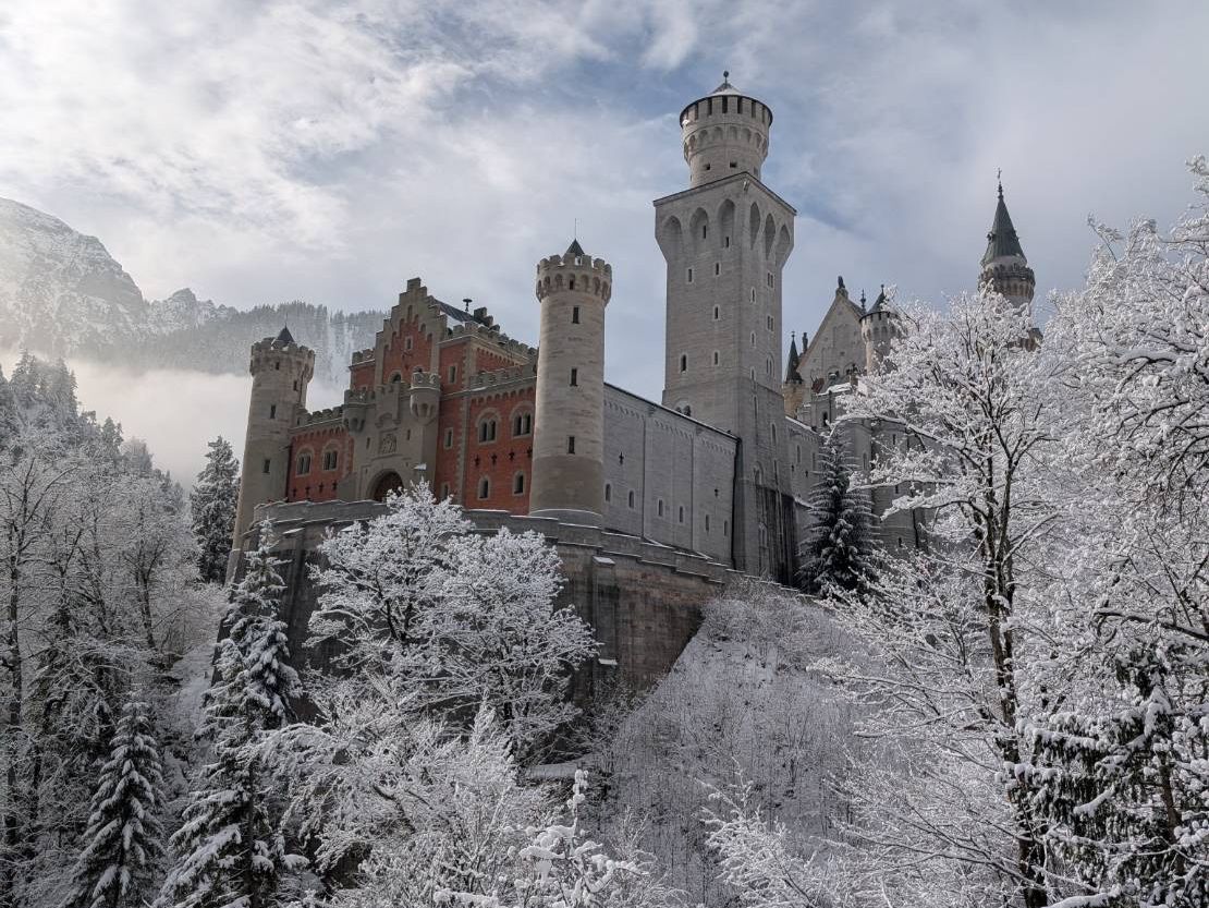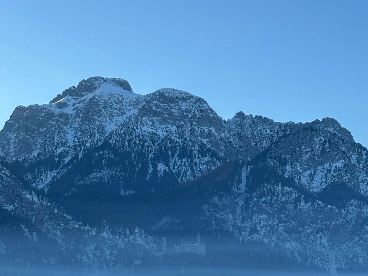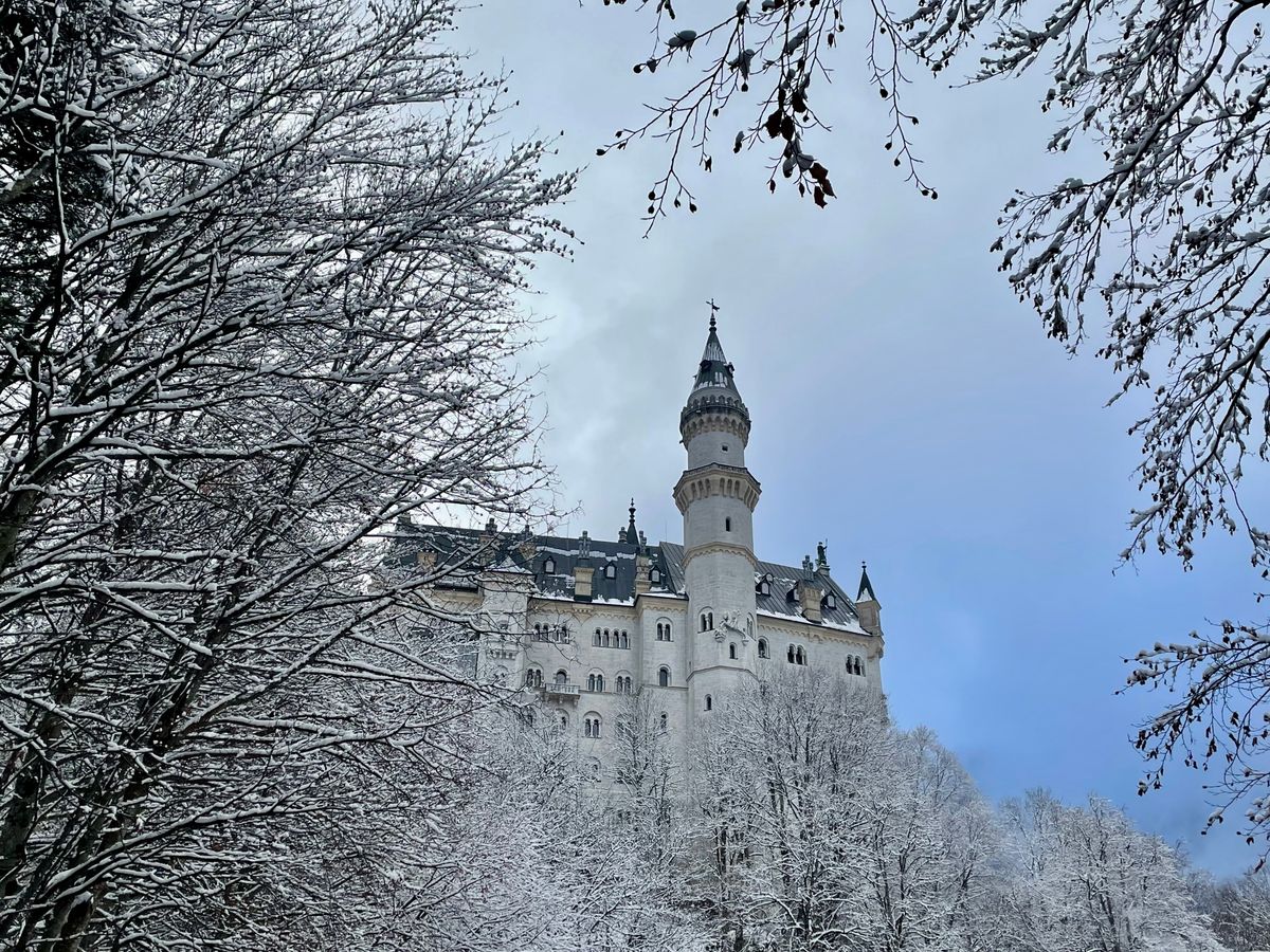 城の目の前に広がるアルプ湖が凍結し、太陽の光が注ぎ込んで湖に反射した先にアルプスの山々が連なる様は一見の価値ありまです。空気までもが凛とした極寒の中で荘厳な城が一層引き立ち、冬のドイツで素敵な時間を過ごすことができました。