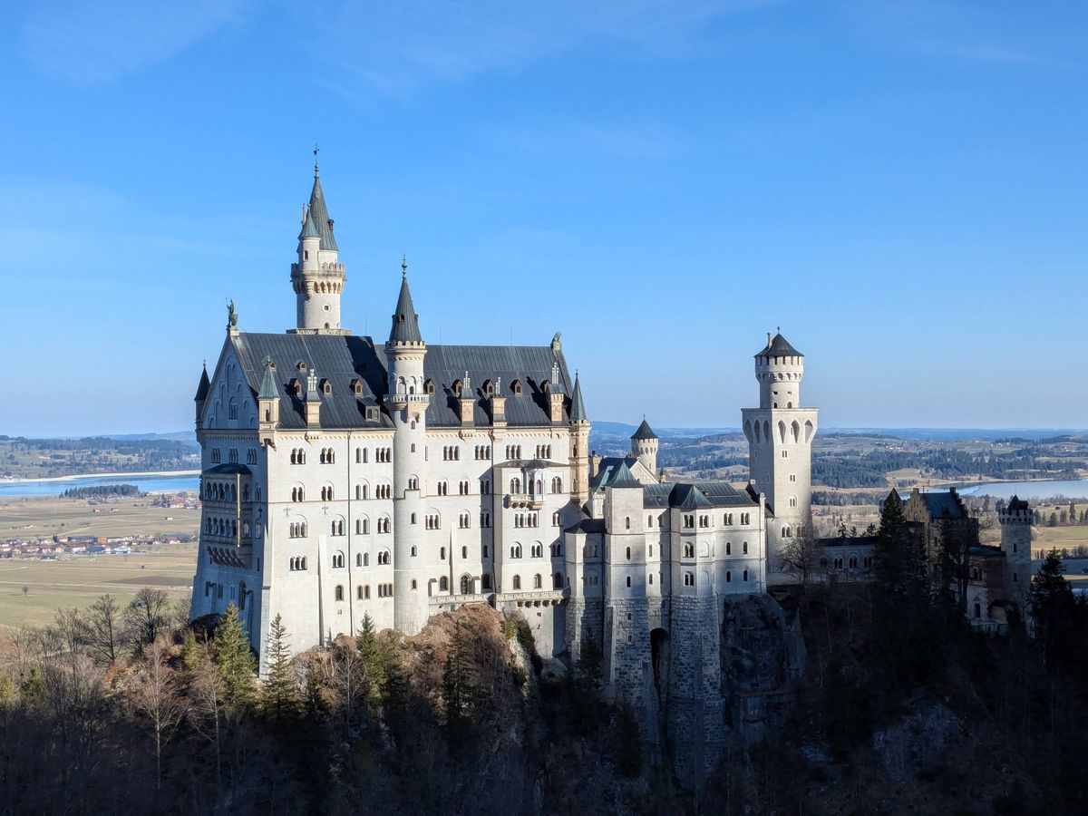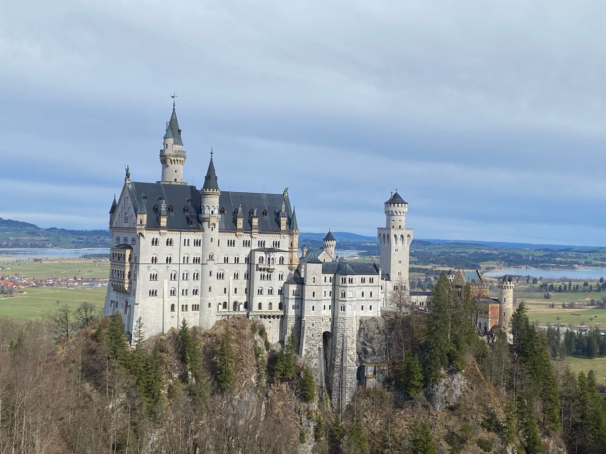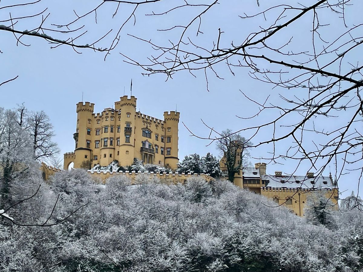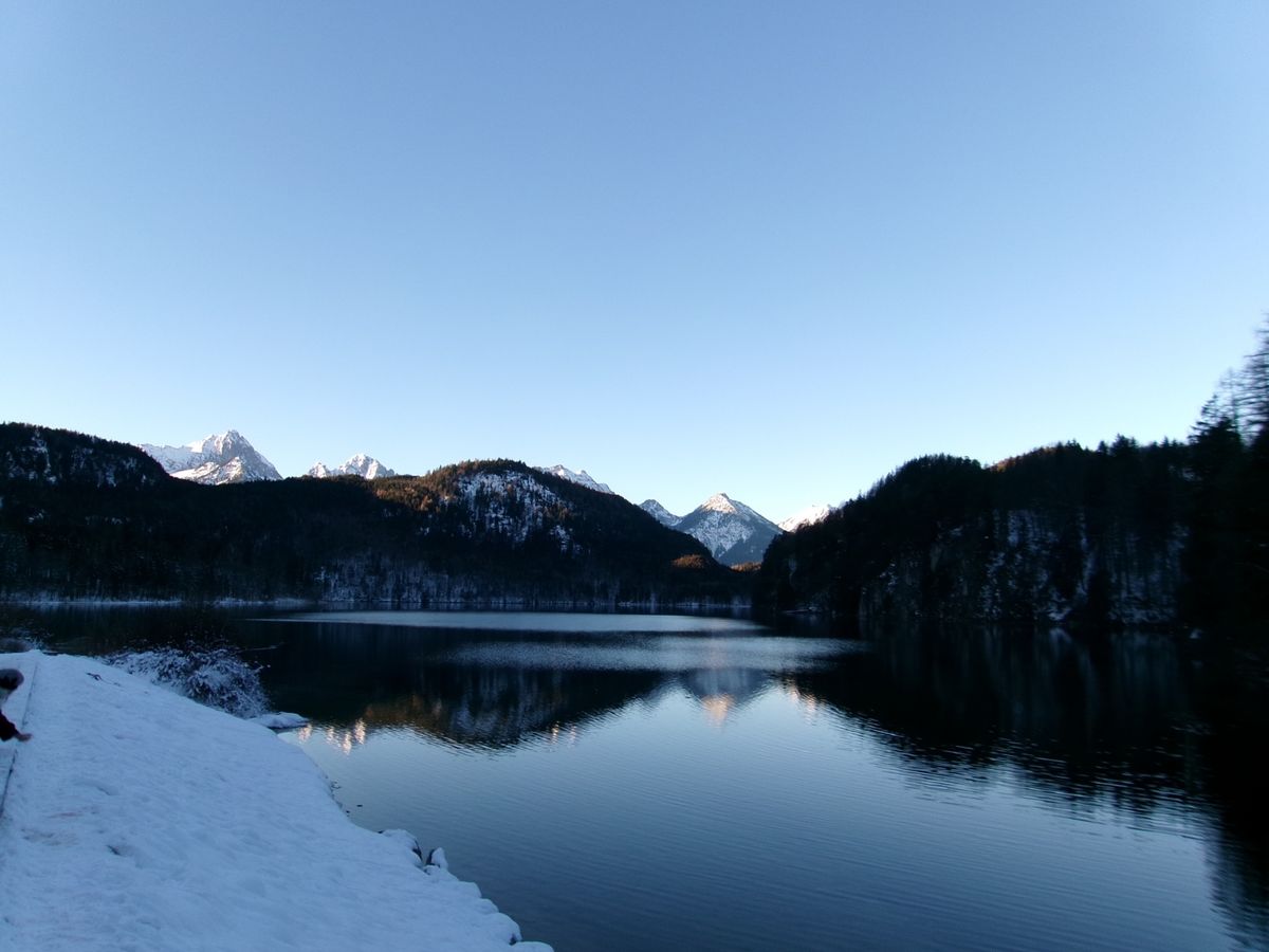 城の目の前に広がるアルプ湖が凍結し、太陽の光が注ぎ込んで湖に反射した先にアルプスの山々が連なる様は一見の価値ありまです。空気までもが凛とした極寒の中で荘厳な城が一層引き立ち、冬のドイツで素敵な時間を過ごすことができました。