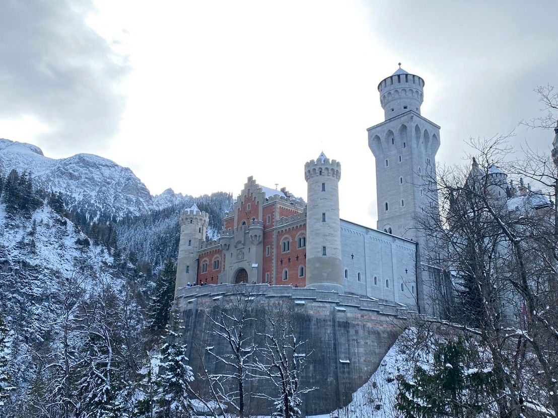 ノイシュバンシュタイン城はディズニーの世界観で、ミュンヘンに来たらぜひ行くべきと感じました‼️残念ながら橋は閉鎖されていましたが雪とのコントラストが幻想的でした。