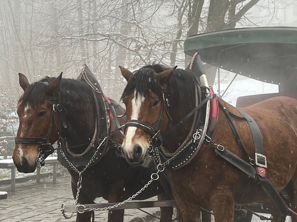 冬はシャトルバスが無いため馬車か徒歩になるのですが、馬車は長蛇の列ができており、やむなく徒歩で登りました。馬車を乗るつもりの方はかなり前もって並んでください。