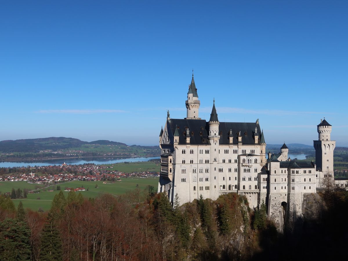 綺麗な青空でノイシュバンシュタイン城も映え、