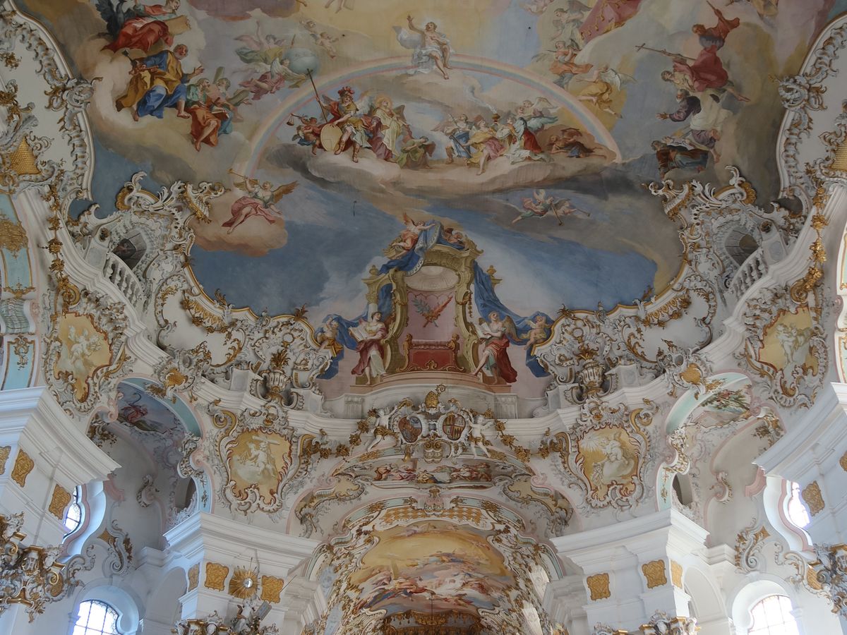 ヴィース教会も、天国は良いところですよと思えるイメージで作られたのが納得な、気持ちが明るくなる内装でした。天井がまるく見えるように描かれた技術が見どころでした。