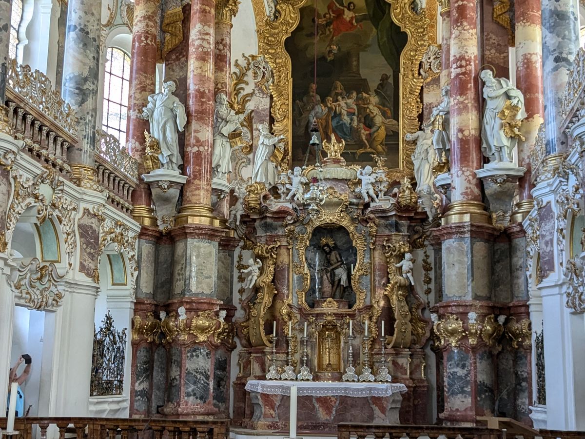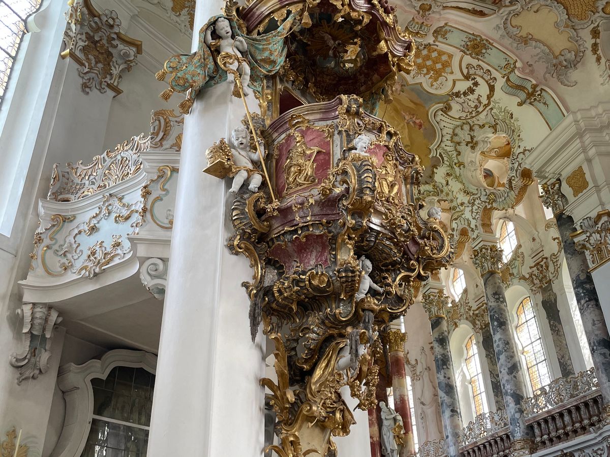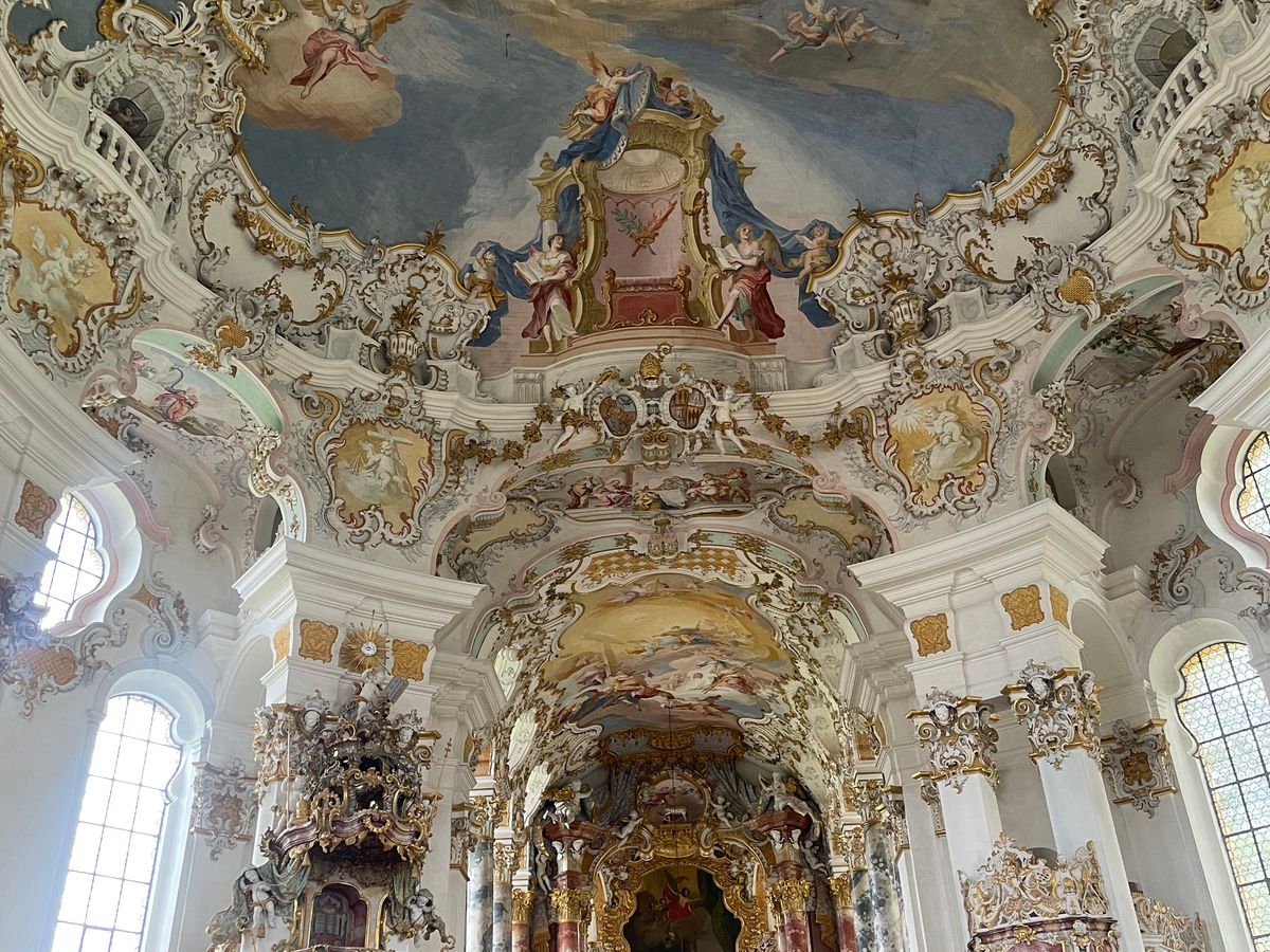 初めにヴィース教会に行きましたが、 この日はお葬式が行われていたため、後ろの方で静かに見学して写真はNGでした。