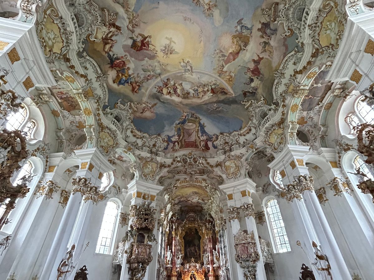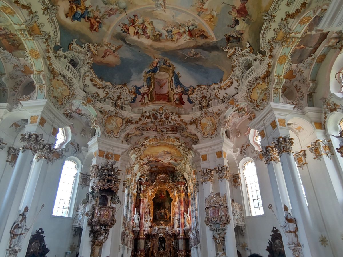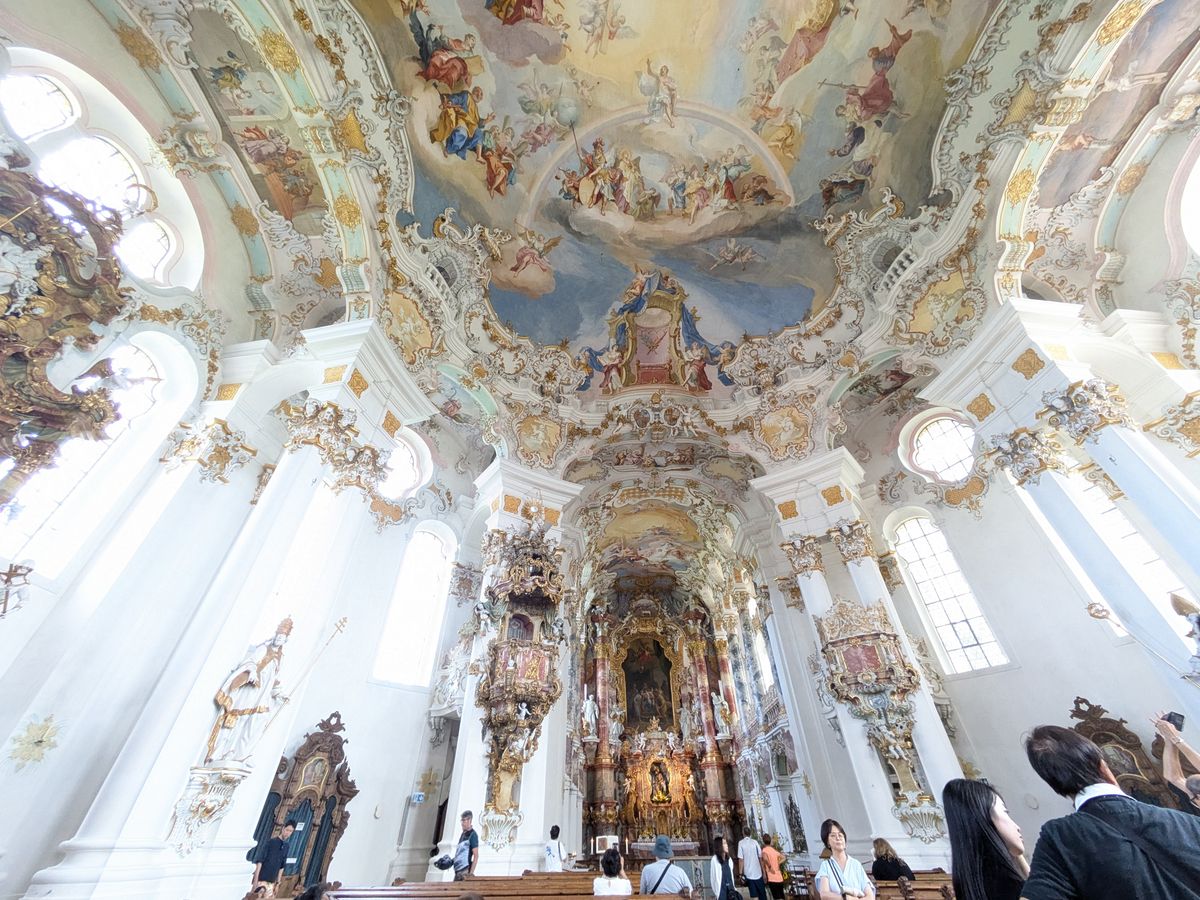 ヴィース教会もロココ調の内装がすばらしく、途中で見る田園風景も綺麗でした。(ガイドの方が教えてくれましたが、野生のコウノトリを見ることもできました!)