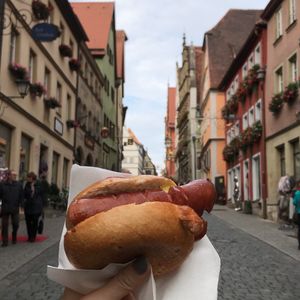 ローテンブルクに着いてから昼食を取ろうとすると観光時間がなくなってしまうので、朝用意しておいたミュンヘンパンを車内でこそこそっと食べて時間を節約しました。(車内での食事はおそらく禁止かと思うので、ささっとしました)