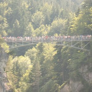 マリエン橋上はたいへん混雑していました。マリエン橋からミニバス終点に歩いて戻りそこから10分程歩くとノイシュバンシュタイン城に着きます。
